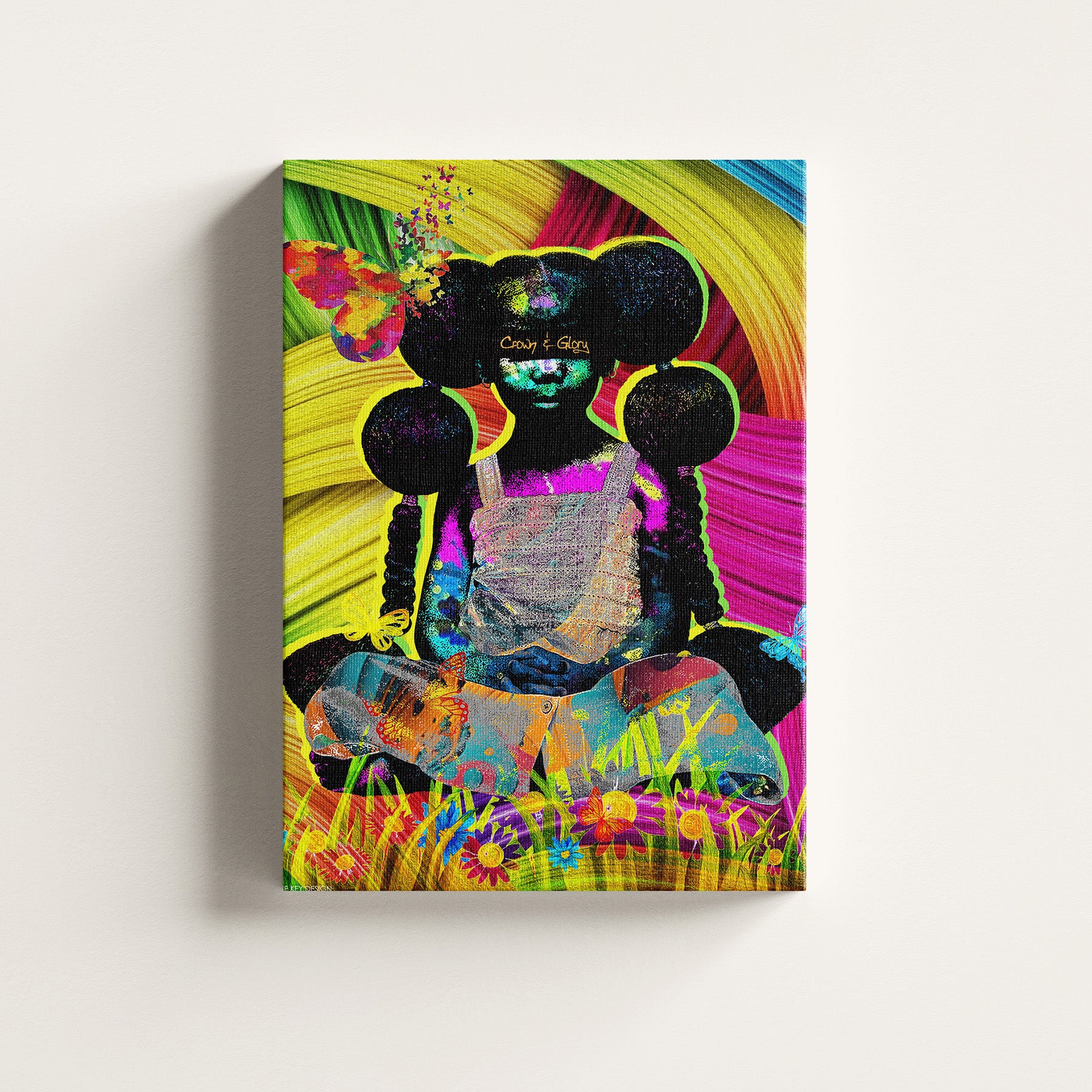 Experience the exquisite charm of our digital masterpiece, paying homage to the lavish elegance of afro-textured hair. This artwork is meticulously replicated on a stunning 18" x 24" canvas, featuring a seamless wrap around border for a perfect presentation.