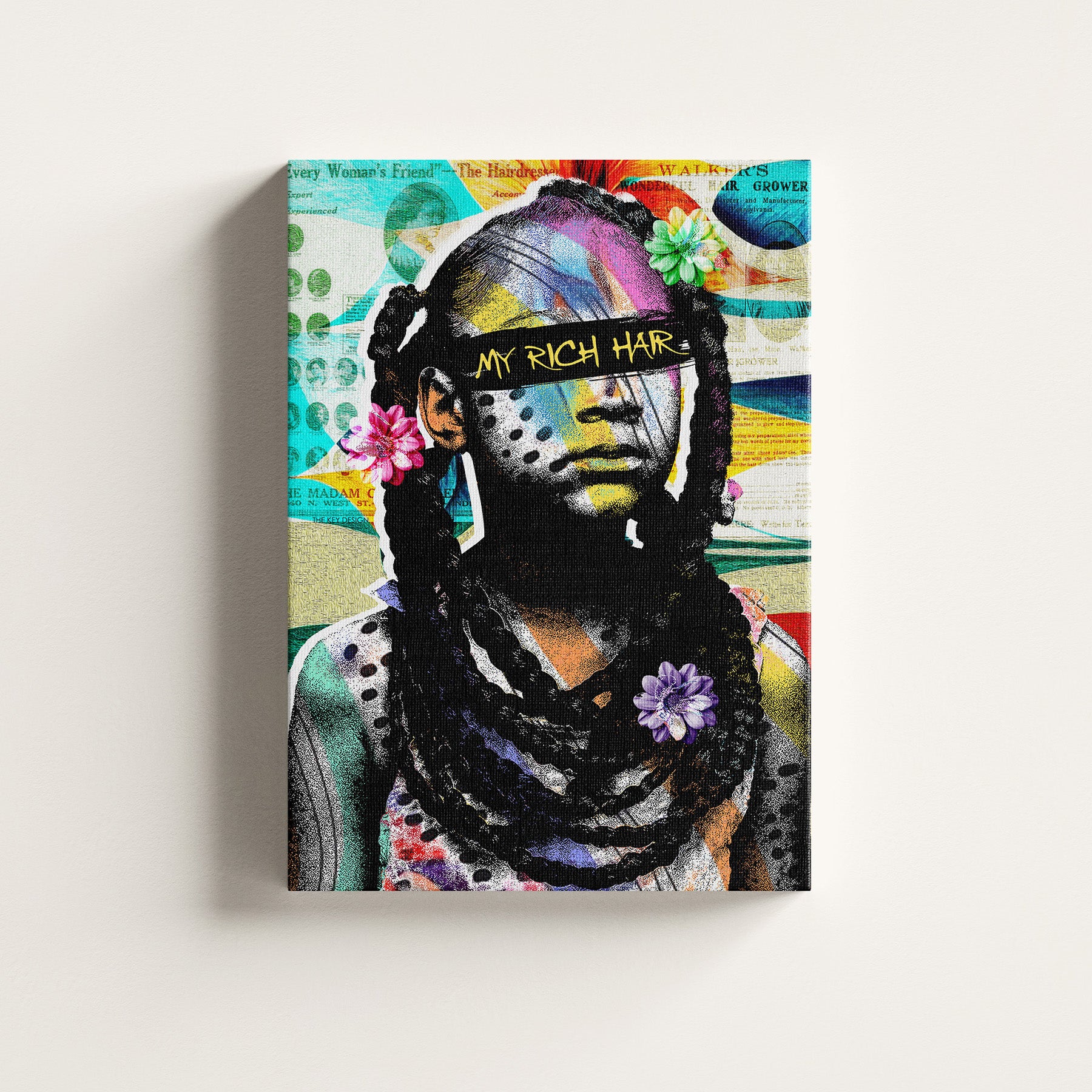 Experience the exquisite charm of our digital masterpiece, paying homage to the lavish elegance of afro-textured hair. This artwork is meticulously replicated on a stunning 18" x 24" canvas, featuring a seamless wrap around border for a perfect presentation